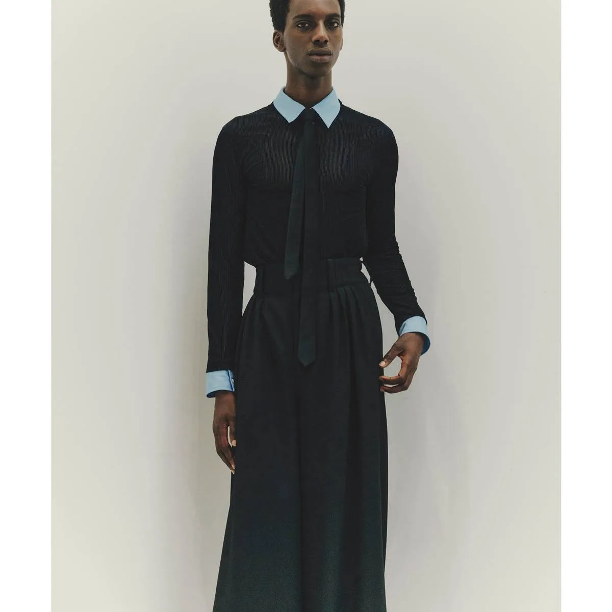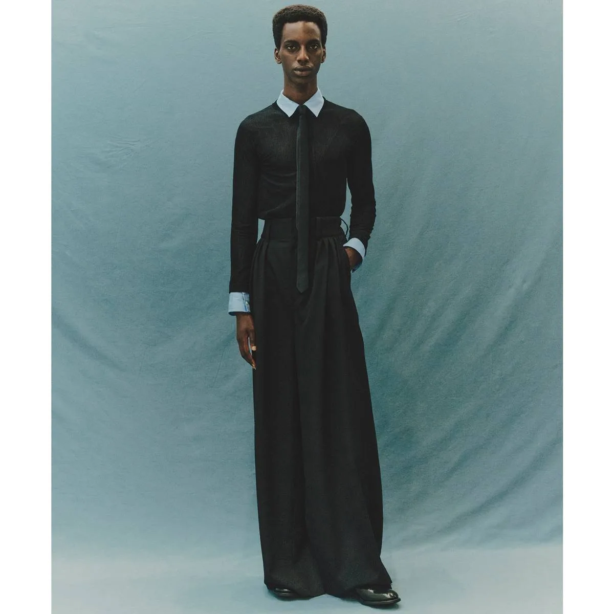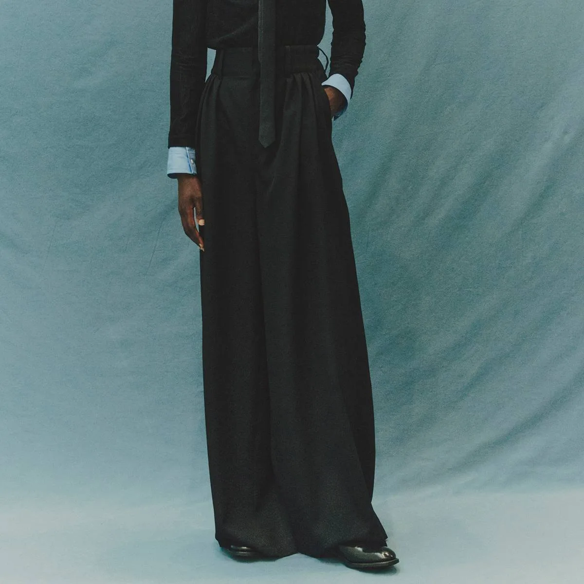 極端なハイウエストと深い3タックによって生まれる、構築的で迫力のあるワイドシルエット。ベルト後部にゴムを配し、ウエストラインに快適なフィット感を持たせています。Juhaロゴが刻印されたオリジナルボタンを採用。オーストラリアのグランビアンス地方で厳選された羊毛を使用したトレーサビリティウールを採用。高密度に織り上げたツイル素材は、しなやかさと耐久性を兼備。整理加工には環境負荷の少ないオゾン処理を施し、柔らかさを保ったまま撥水性を向上。日本製。