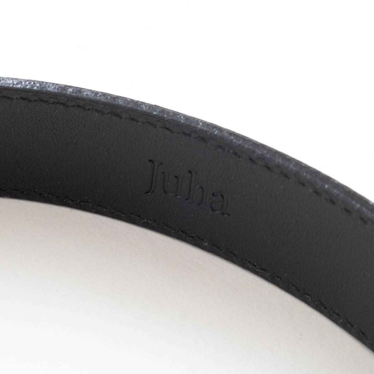 25mm幅のやや細身ベルト。浅草の職人が丁寧に仕上げる革小物コレクション。エッジに施された黒のコバ塗りが特徴。Juhaロゴ入りの化粧箱付き。軽く吟擦りを施した染料染め&オイル仕上げのプルアップレザーに、プリズム柄の型押し加工を施し、堅牢でしっかりとした質感に仕上げました。表面は傷がつきにくく、爪で引っ掻いても跡が残りにくいため、長く愛用いただけます。日本製。