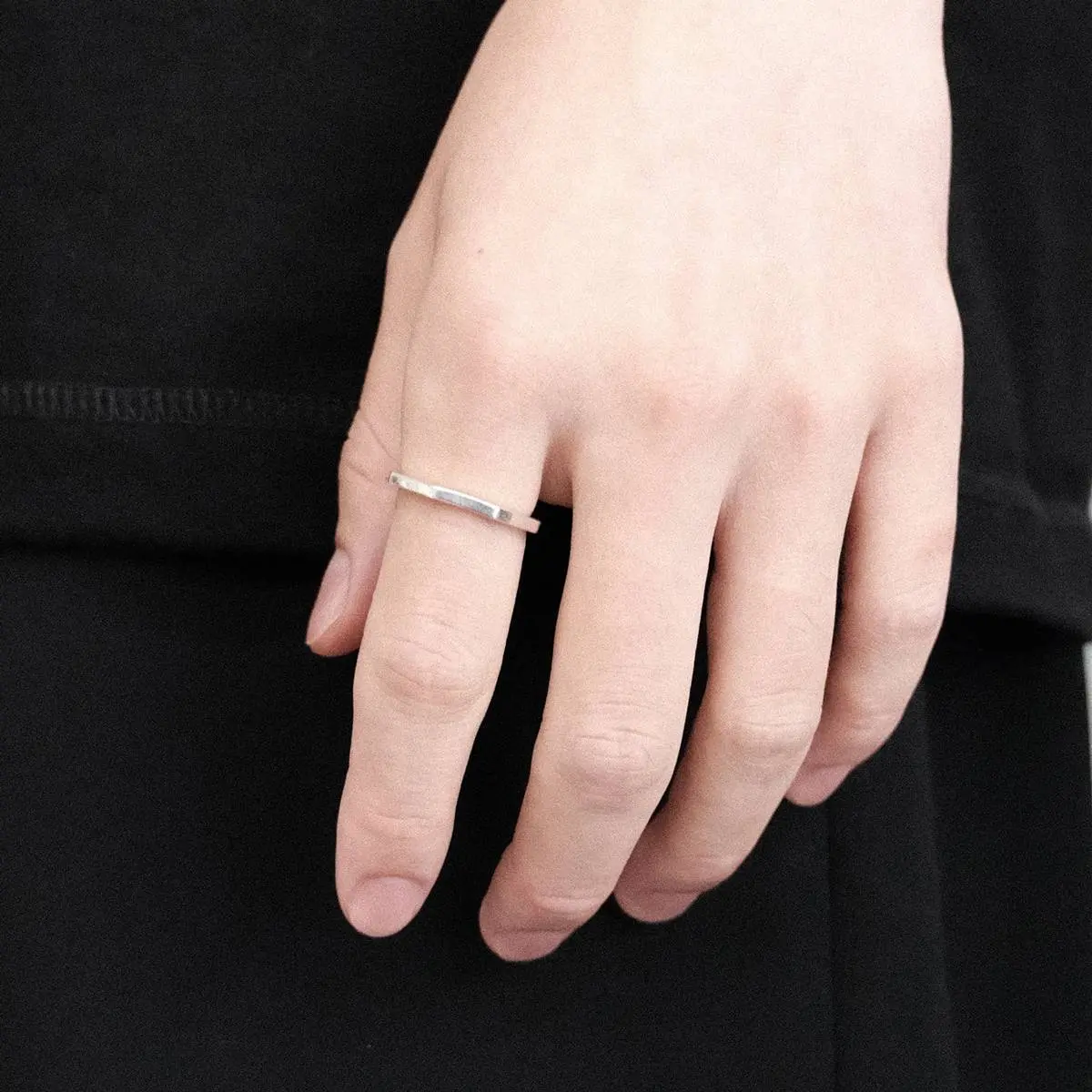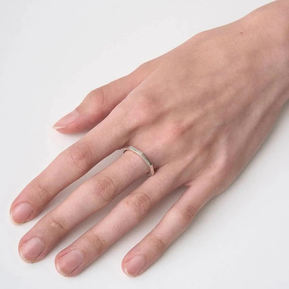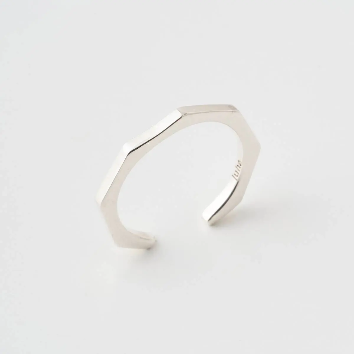 エッジデザインのリング。型を使用せず、全行程を国内の職人にハンドメイドでの制作を依頼したジュエリー。ナットのように角を作ったエッジデザイン。内側にJuhaの刻印。Juhaのロゴを素押ししたオリジナルのポーチが付きます。日本製。