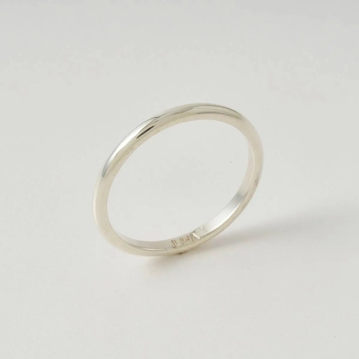 輝きの強いスターリングシルバーを使用したリング。型を使用せず、全行程を国内の職人にハンドメイドでの制作を依頼したジュエリー。素材を生かしたミニマルなデザイン。2mm幅の華奢な仕様、山高甲丸で滑らかな付け心地。内側にJuhaの刻印。Juhaのロゴを素押ししたオリジナルのポーチが付きます。日本製。