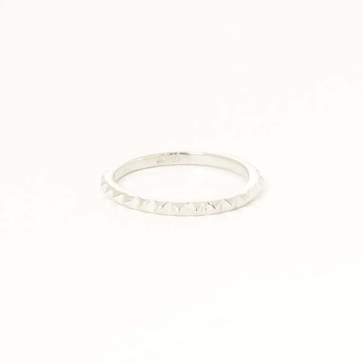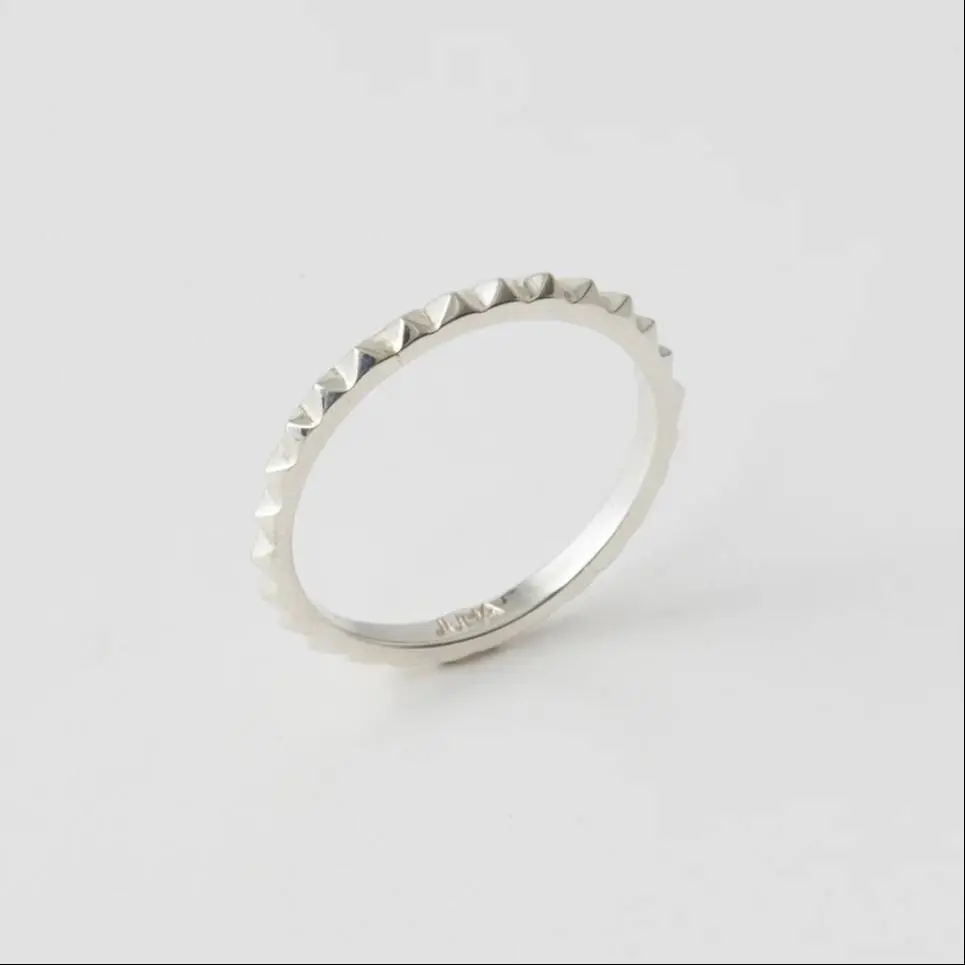 スタッズデザインのリング。型を使用せず、全行程を国内の職人にハンドメイドで製作を依頼したジュエリー。2mm幅に小さなスタッズを作ることで華奢なラインを表現。内側にJuhaの刻印。Juhaのロゴを素押ししたオリジナルのポーチが付きます。