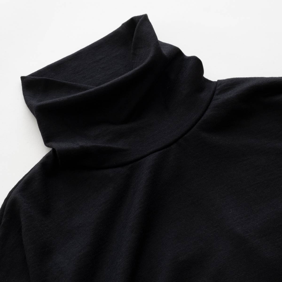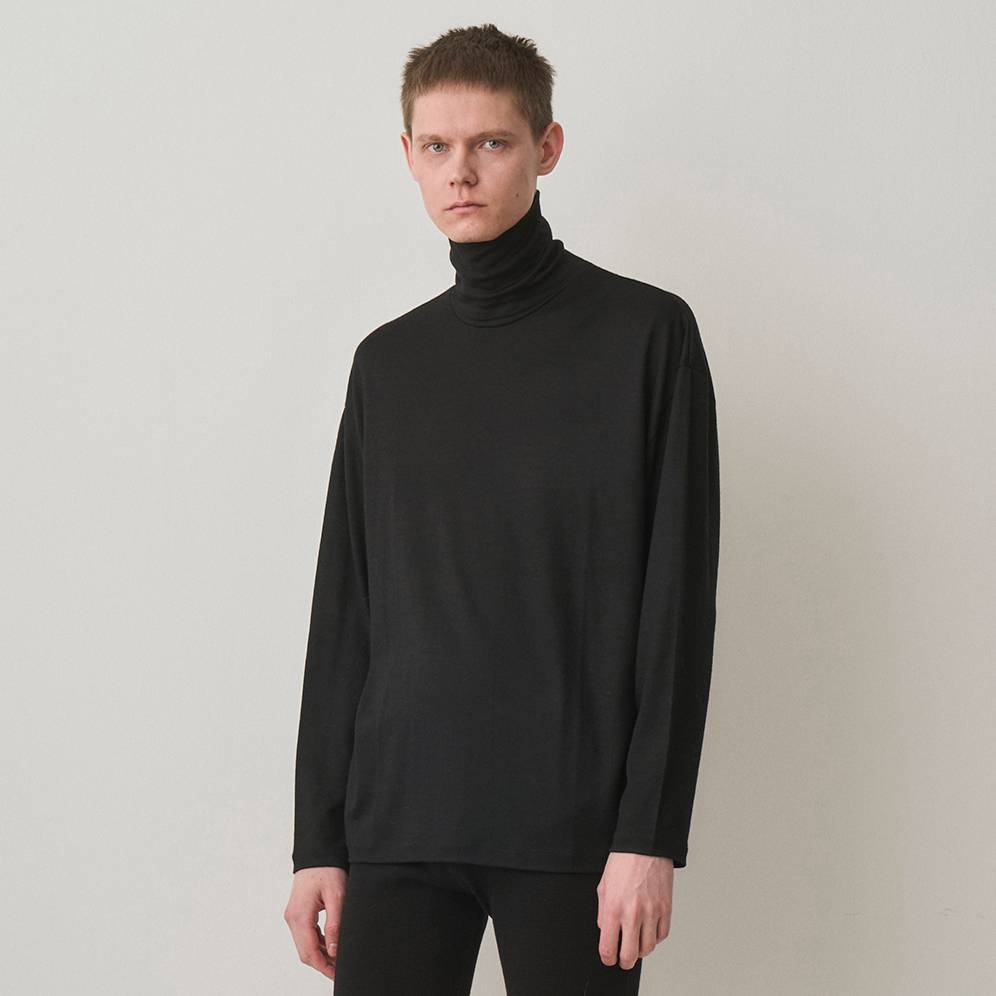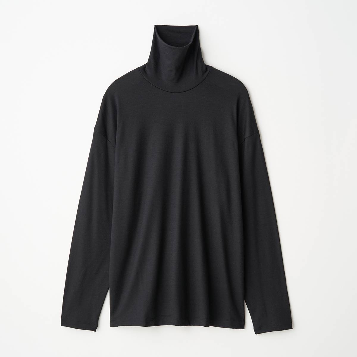 定番で展開しているウール素材のタートルネックカットソー。首元に沿うタイトなネックデザインと、とろみのある素材を活かしたリラックスシルエットが特徴。2/72細番手のウール糸を使用し、キメ細やかでコンパクトな表情を実現。上品な光沢感と適度なストレッチ性を兼ね備え、斜行のないウォッシャブルウール素材で扱いやすい仕上がりに。日本製。