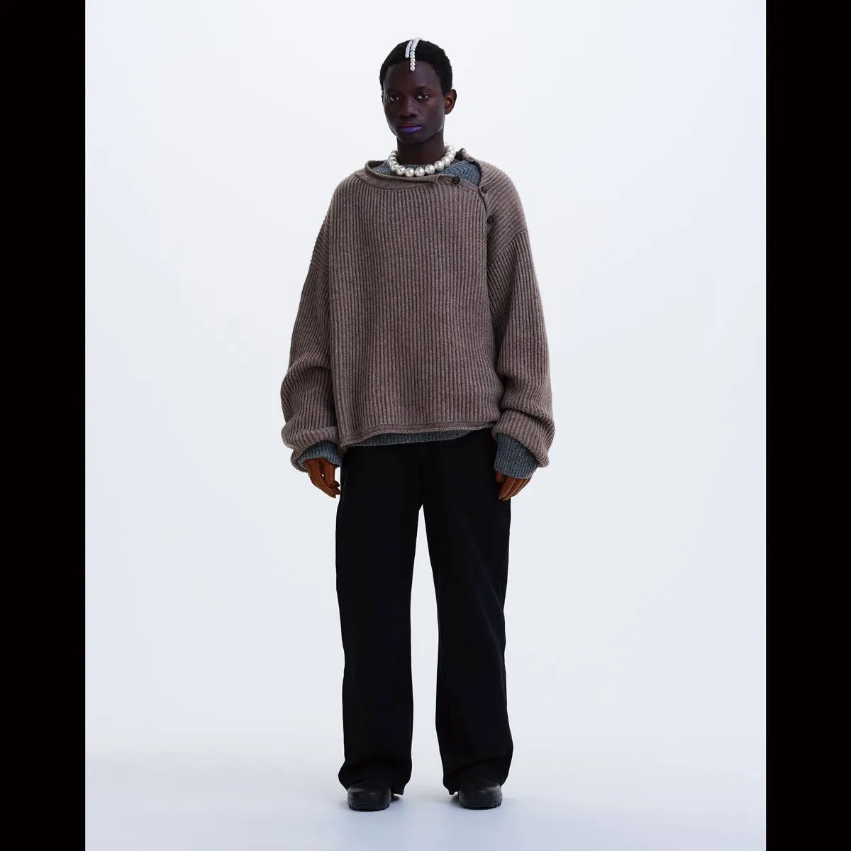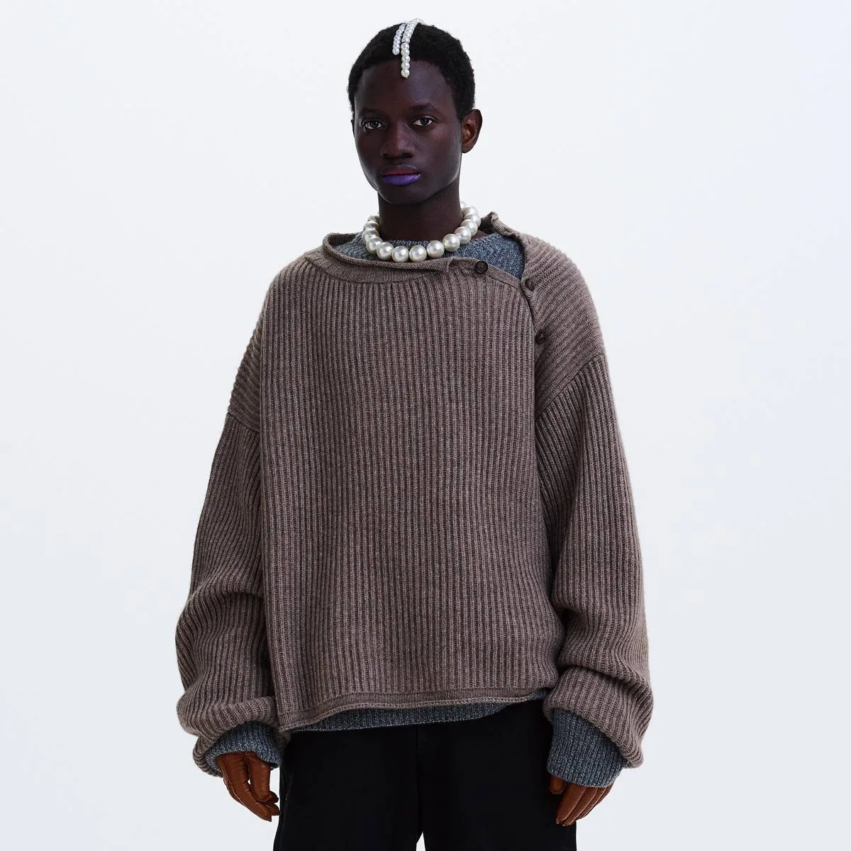 nakedgauge COMFORT BLEND YARN LOOSE FIT SWEATER(BROWN)