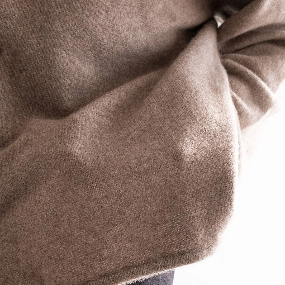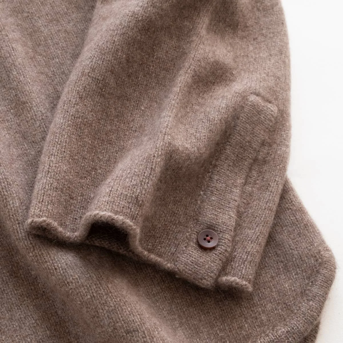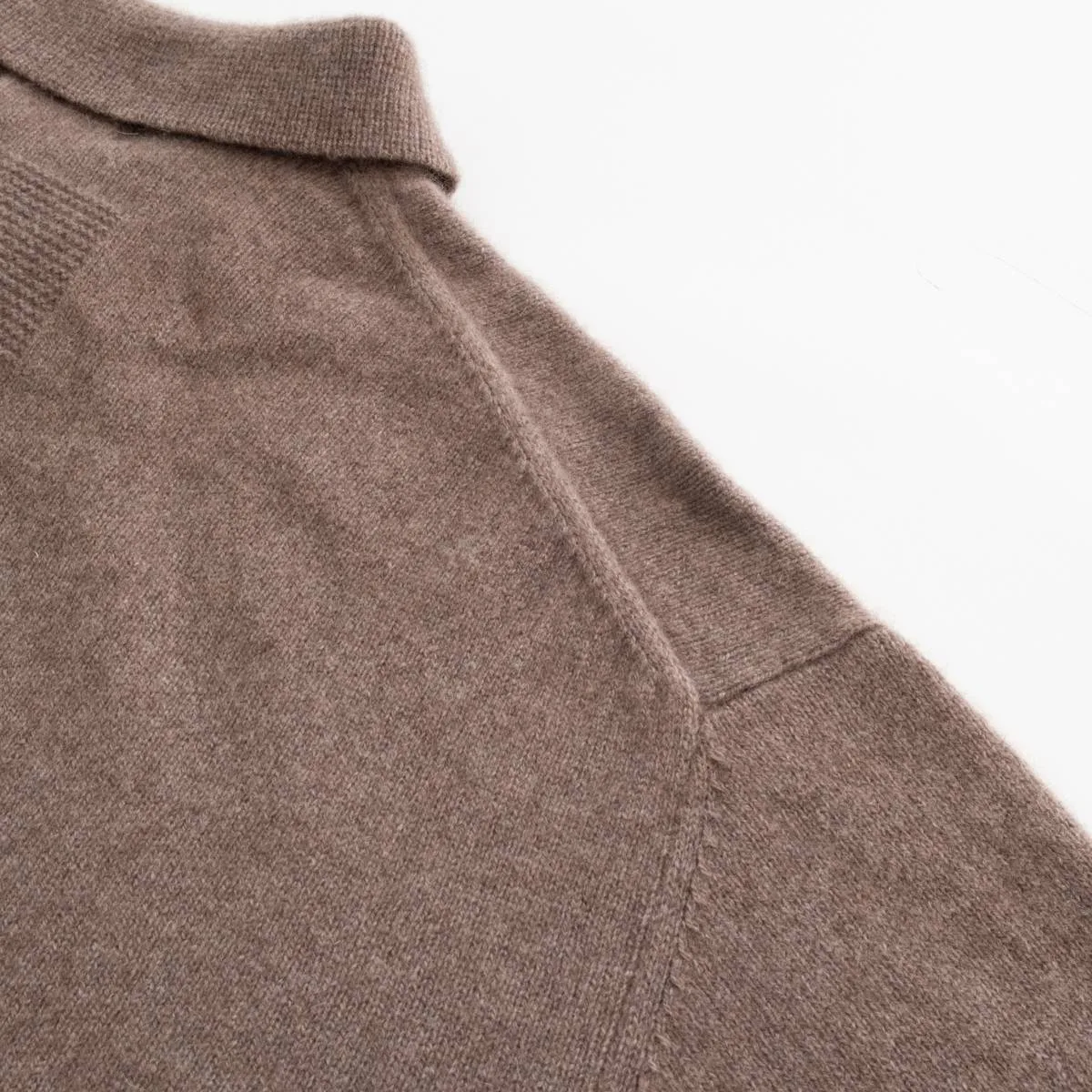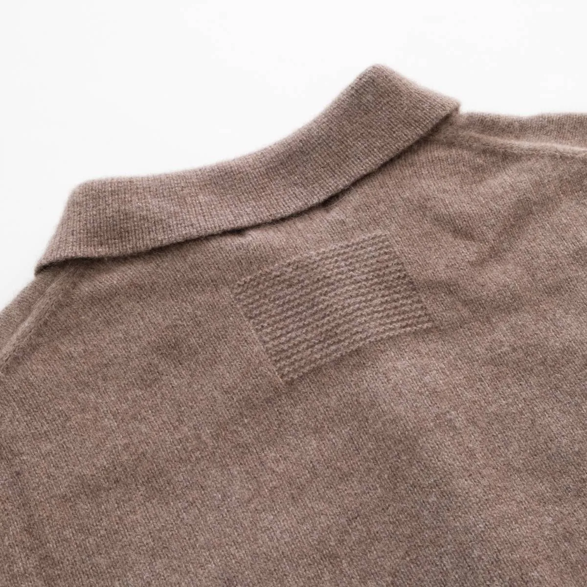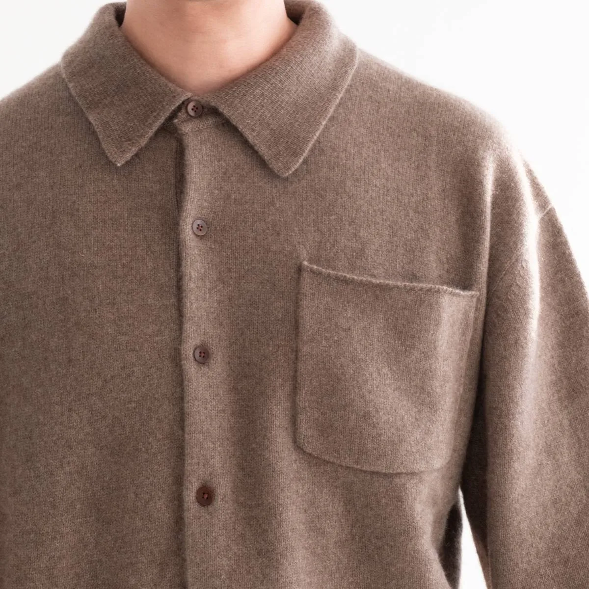 nakedgauge(ネイキッドゲージ)が得意とするニットアイテム。今では希少となっている上質素材のカシミヤと、極細で気泡の入った軽量と断熱が特徴のセーブルウールを混紡した最高級素材のニットシャツ。セーブルとはクロテンとも呼ばれるイタチ科の動物のウールです。極上の生地を贅沢に使った、ゆったりとしたシルエットのレギュラーカラーのニットシャツ。素材感と自然な色の風合いがとても上品に魅せるアイテム。日本製。
