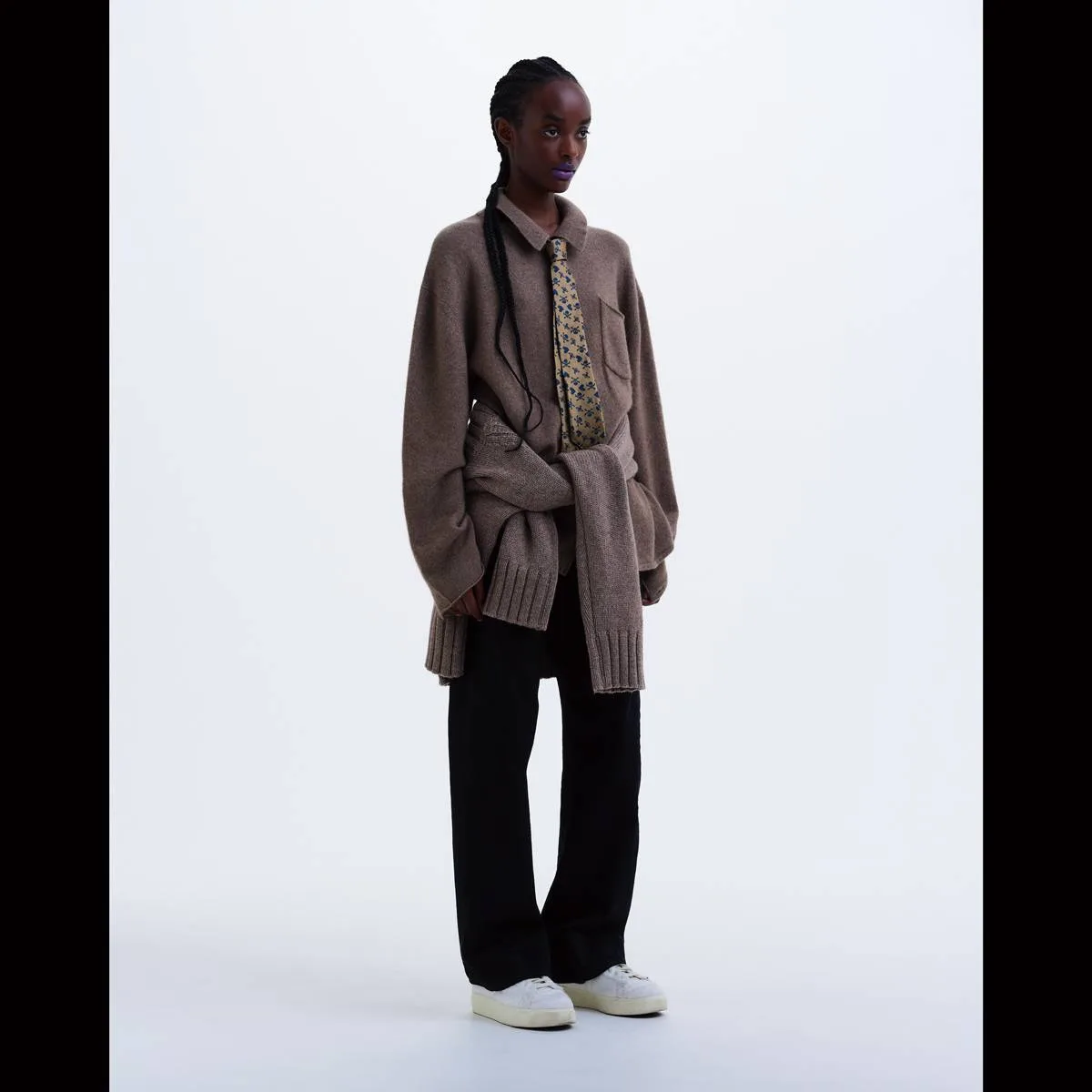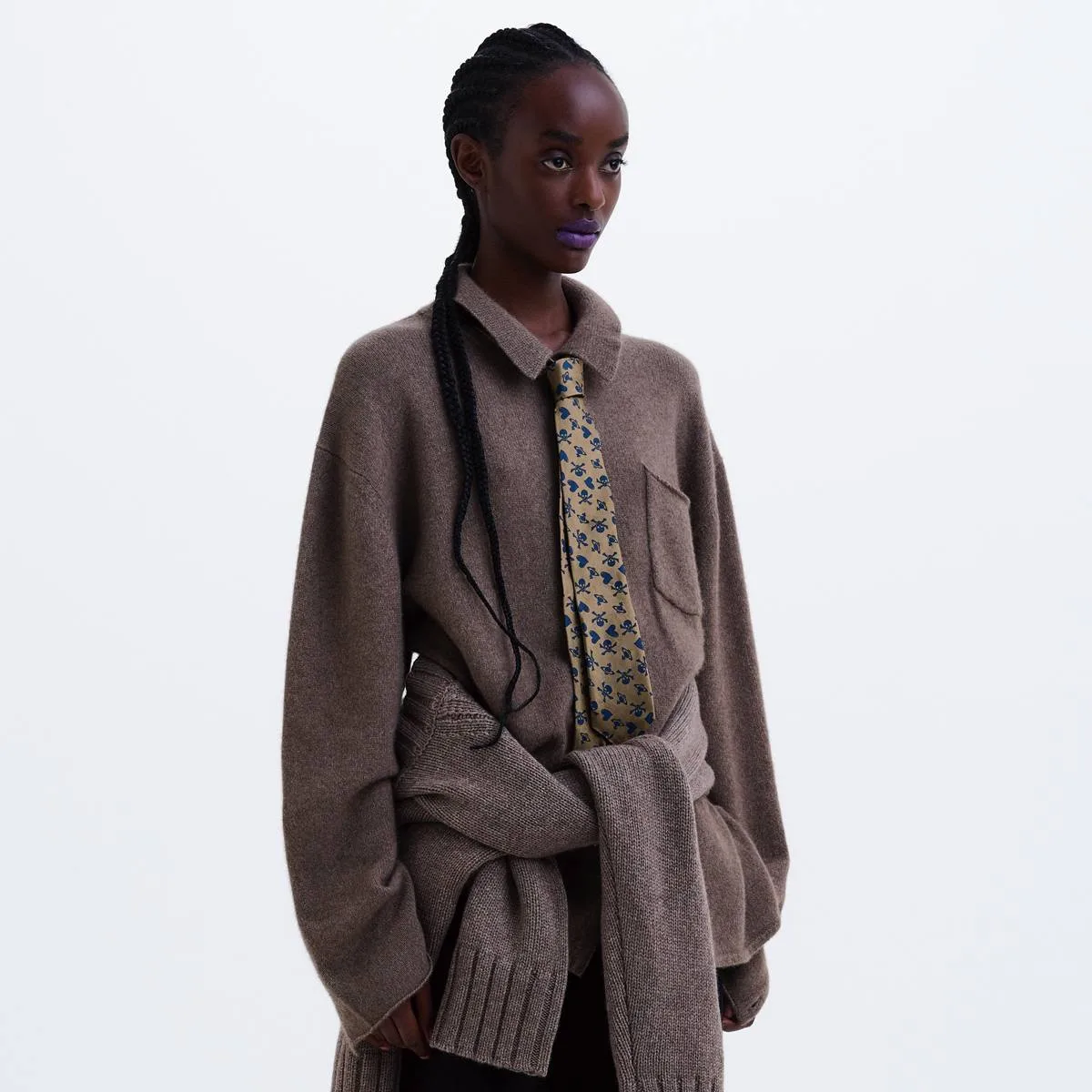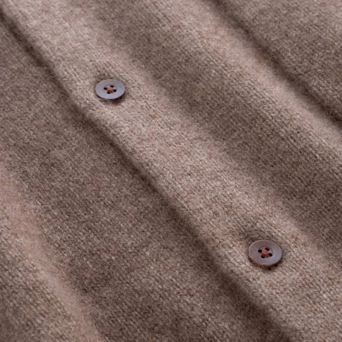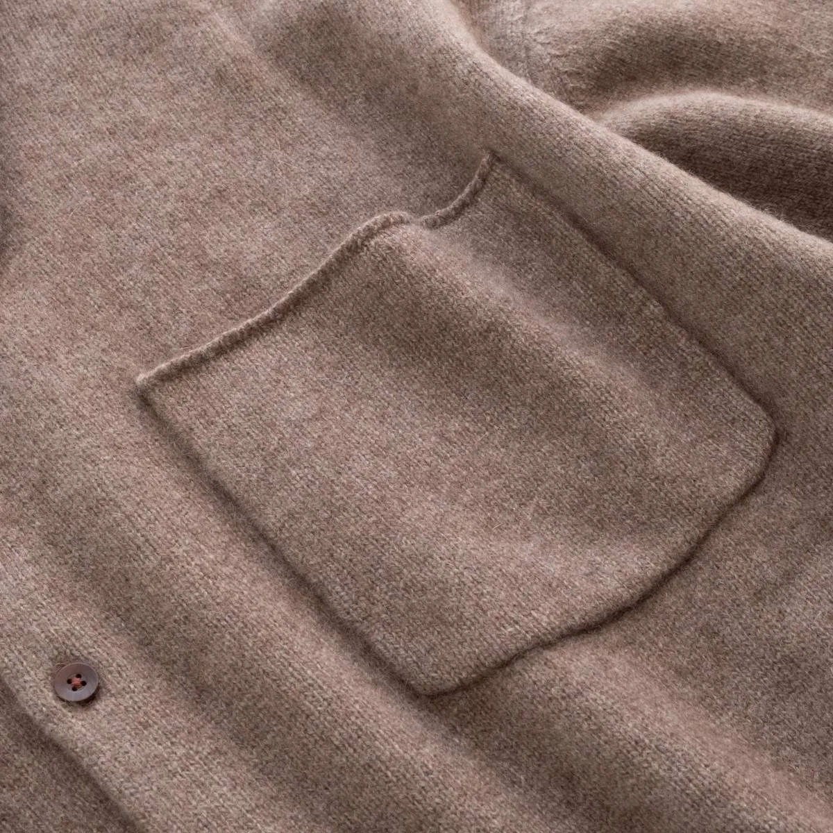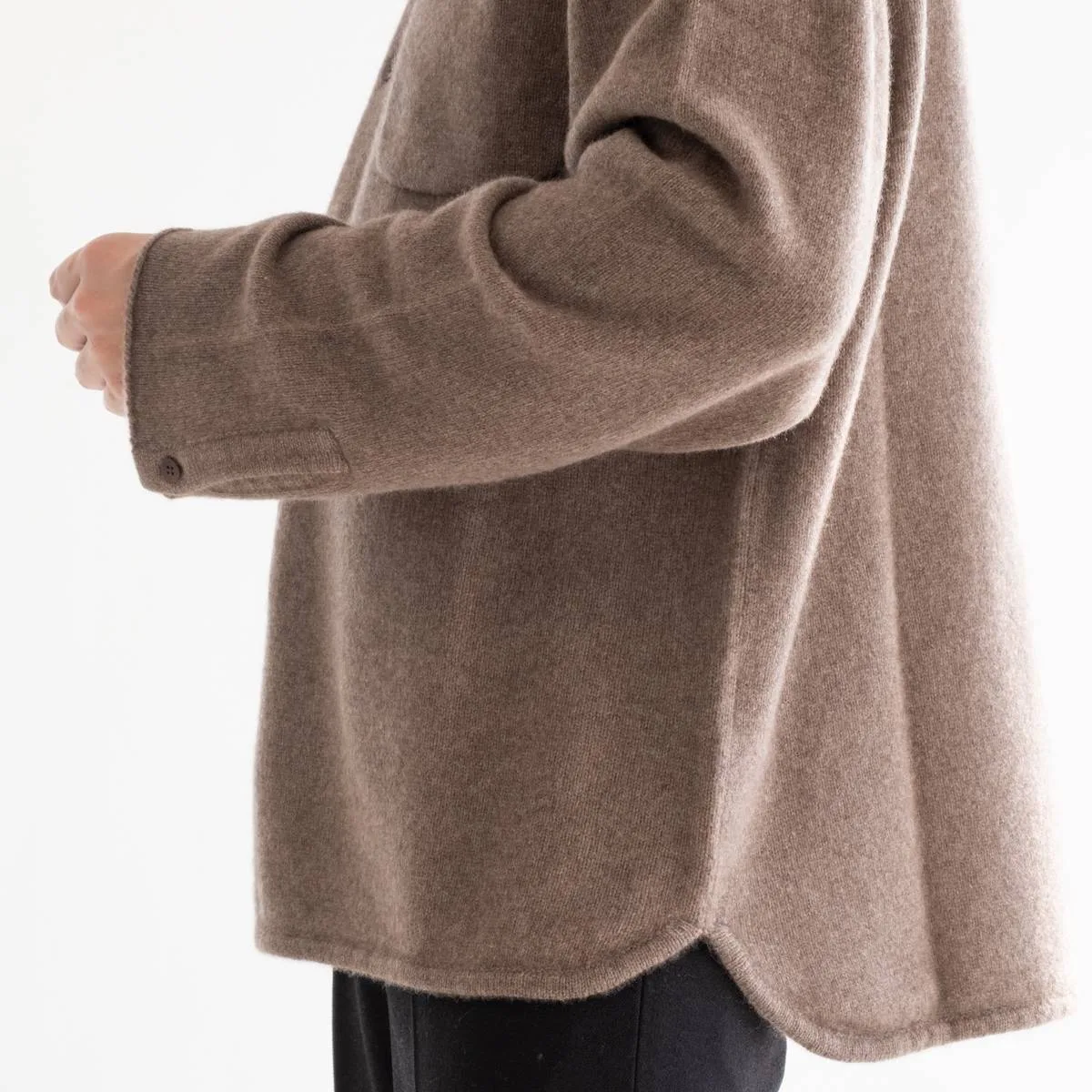 nakedgauge(ネイキッドゲージ)が得意とするニットアイテム。今では希少となっている上質素材のカシミヤと、極細で気泡の入った軽量と断熱が特徴のセーブルウールを混紡した最高級素材のニットシャツ。セーブルとはクロテンとも呼ばれるイタチ科の動物のウールです。極上の生地を贅沢に使った、ゆったりとしたシルエットのレギュラーカラーのニットシャツ。素材感と自然な色の風合いがとても上品に魅せるアイテム。日本製。