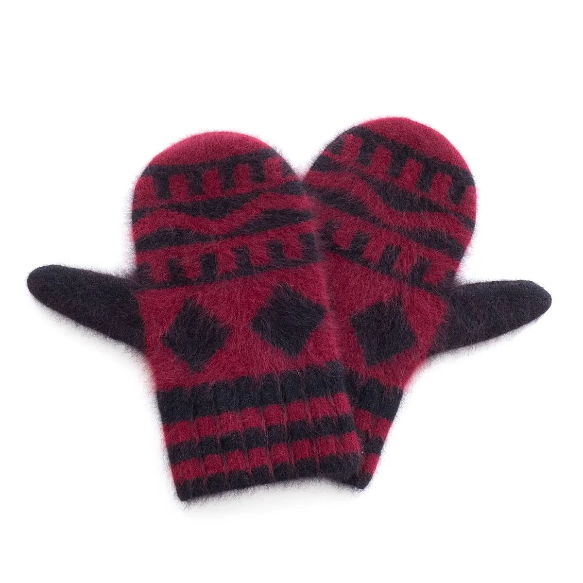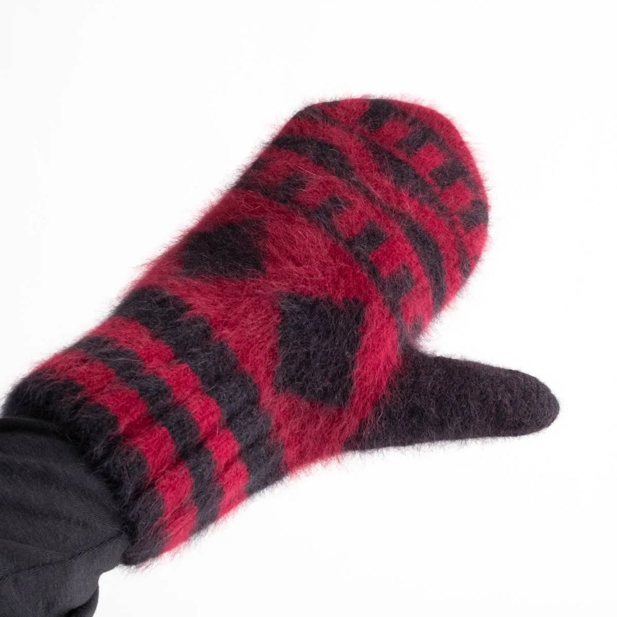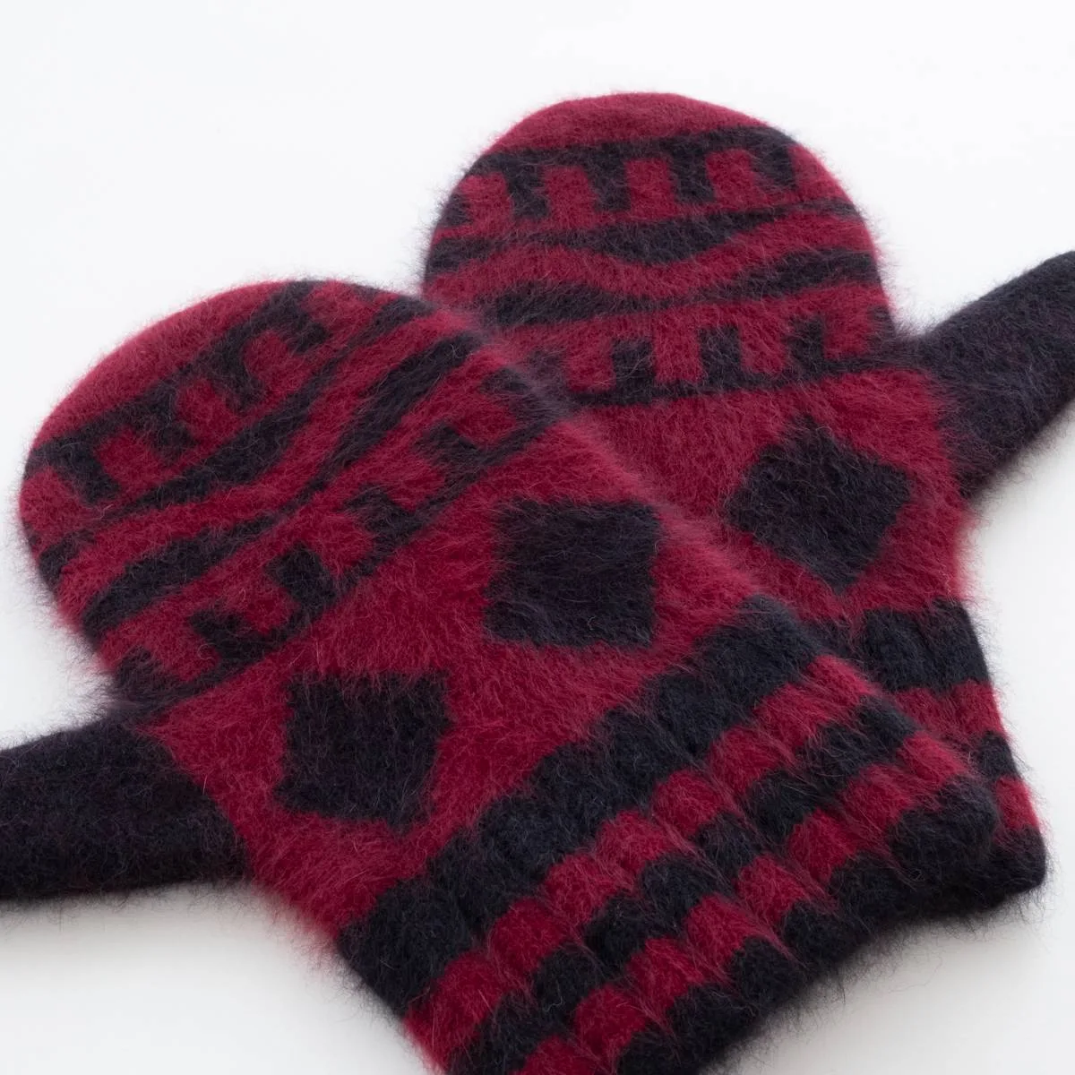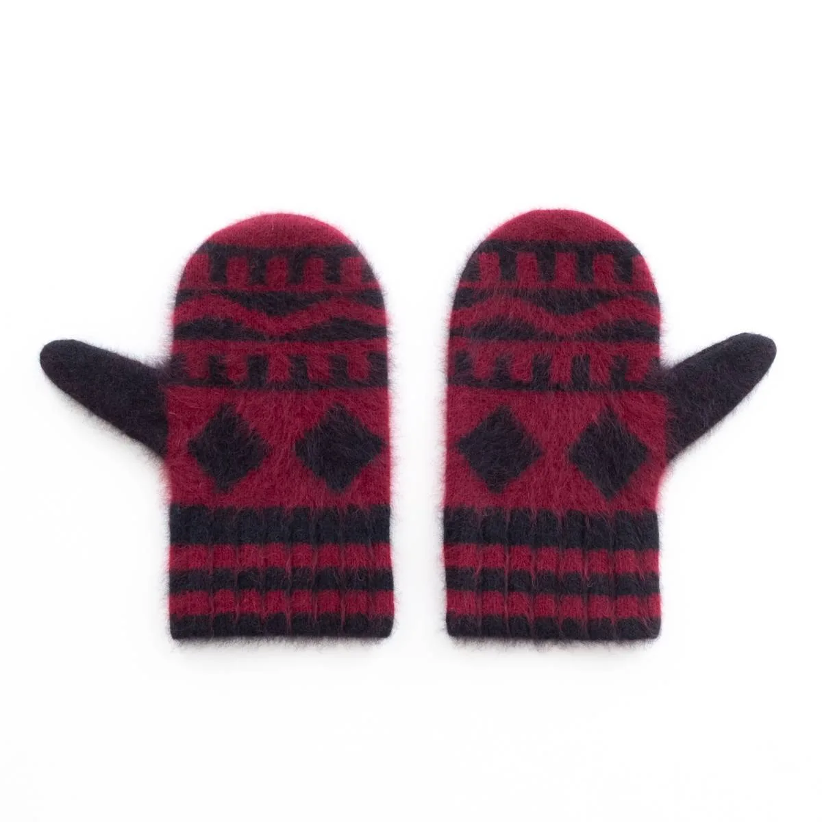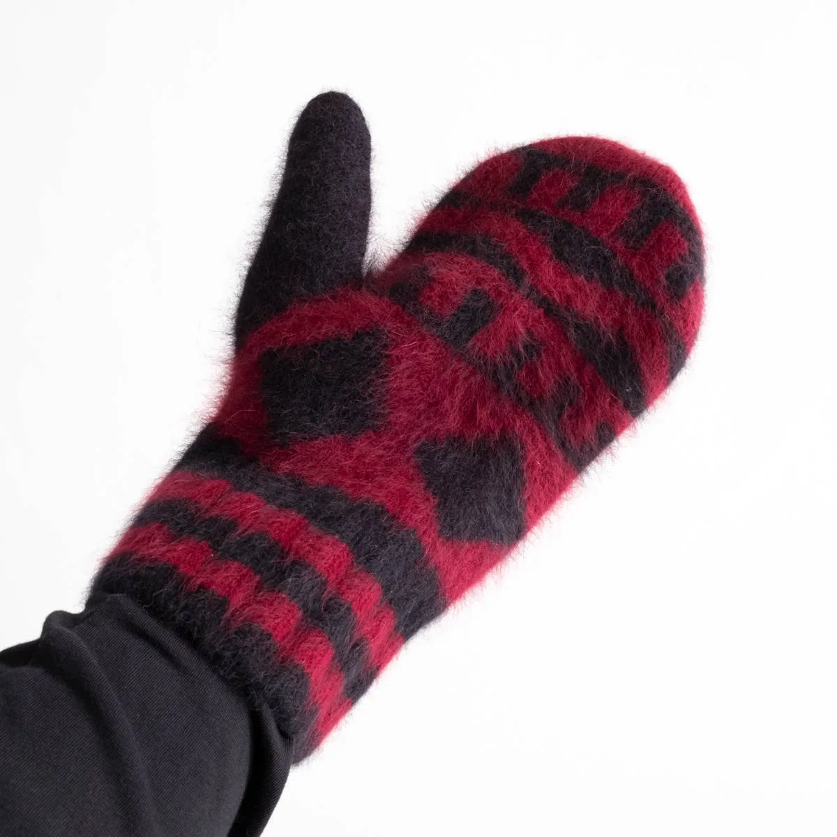 nakedgauge FOX FUR N PATTERN MITTEN(WINE RED)