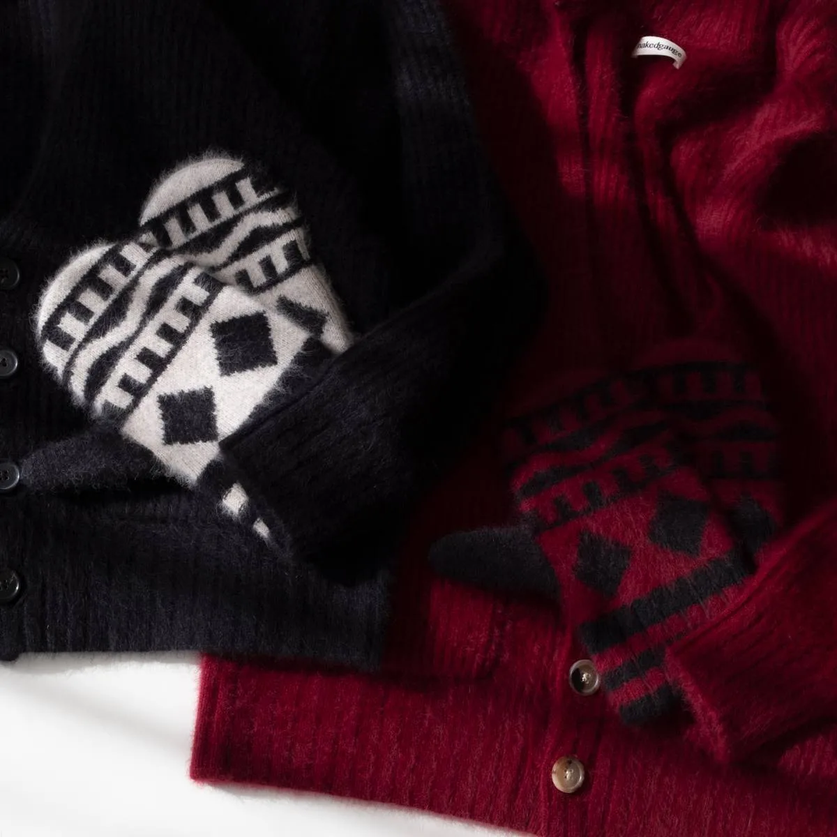 nakedgauge(ネイキッドゲージ)が得意とするニットアイテム。フォックスウールを使って作られたオーバーサイズのミトン。他ではなかなか使われていないフォックスのウールは、普通のウールとは一線を画した独特な風合いと柔らかさ、あたたかみを実現しています。ブランドオリジナルのノルディック柄がとても印象的。指にフィットさせるという感じではなく、かなりゆったり大きく設計されているので、大きく被せるという風な感じの着用感です。
