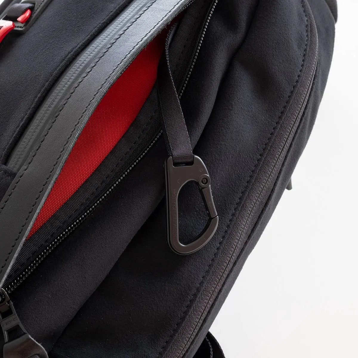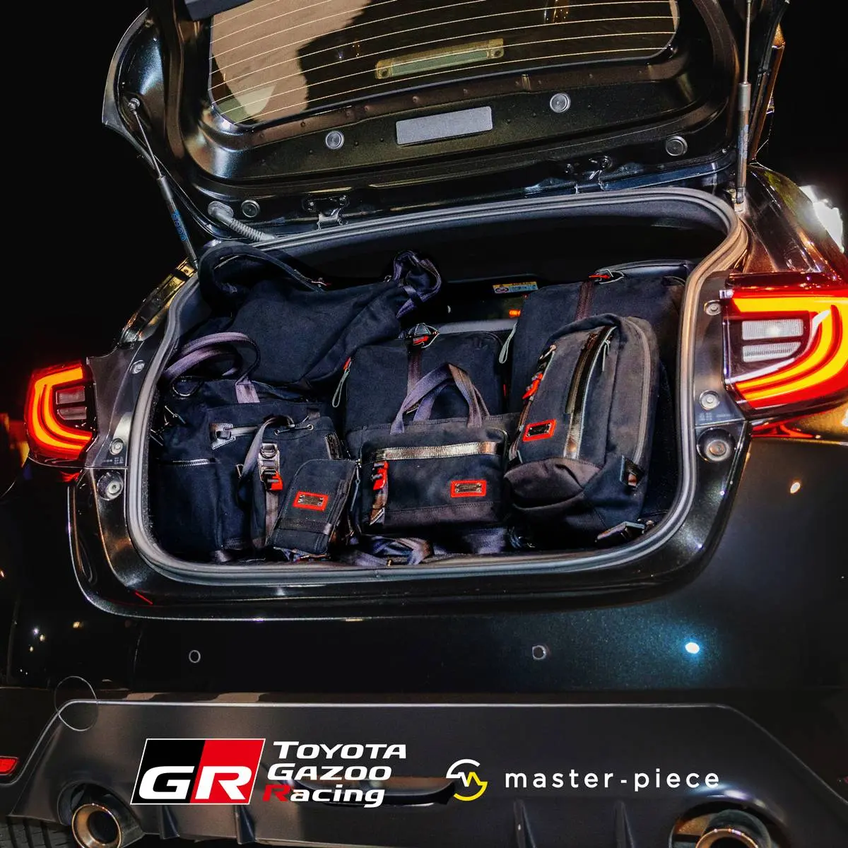 「GRは現在も“もっといいクルマ”をつくるために、モータースポーツに挑み続けている。走る、壊れる、直す。これを繰り返すことでクルマが強くなる。モータースポーツを起点とした“もっといいクルマづくり”に終わりはない。」挑戦を続けるGRのスピリットと、master-pieceのクラフトマンシップ。互いの妥協を許さない哲学が共鳴し、初のコラボレーションが実現しました。『GR YARIS』や『GR COROLLA』のシートに採用されるスウェード調ファブリックをアップサイクルし、バッグの本体素材に使用。極上の肌触りと極限のモータースポーツで実証された高耐久の素材に、CORDURA Ballisticナイロンやエコカウレザーを組み合わせ、GRを象徴するレッドを随所にあしらった特別仕様に仕上げています。本体素材には、トヨタ自動車株式会社が販売している車に専用のチューンアップを施したスポーツカーブランドGRの代表的な車種『GR YARIS』や『GR COROLLA』のシートに採用されているスウェード調ファブリック(アウンデ紡織株式会社製)を使用しています。大変繊維が柔らかく、滑らかな触感で極上の肌触りと高い強度を兼ね備えており、上質で表情豊かな素材感が特徴です。自動車のシート用に開発されたため、難燃性・耐光性・耐候性・耐摩耗性などの品質基準を満たした機能的な素材です。この商品は、自動車用シートを製造するトヨタ紡織株式会社のブランド『RE:TERRACE(リテラス)』によって、捨てられるはずだった表皮材を活用・アップサイクルしています。アップサイクルとは、本来廃棄される予定だったものに新たな価値を与え、別の製品として再利用する手法です。コラボレーションの証であるGRのピスネーム、内装の生地にはGRを象徴するレッドカラーの420dナイロンを使用し、master-pieceの定番とは全く異なった印象の雰囲気に仕上げました。さらにシリーズ共通のディテールとして、GRブランドカラーのレッドに仕上げた外装レザーネームの台座や、キャップやグローブなど小物を留める金属製オリジナルフックバックを装備。このフックバックルは脱着・交換ができるので、別売りのパーツで異なるカラーにカスタムができることも特徴です。内装には樹脂製のナスカンがついており、スマートキーなどの小物の収納に最適です。GR車種のハイクオリティなスウェード調シートファブリックをアップサイクル。master-pieceのバッグ9型の本体素材に落とし込んだ『TOYOTA GAZOO Racing』初めてのコラボレーションシリーズです。日本製。