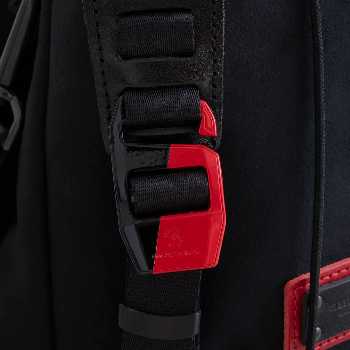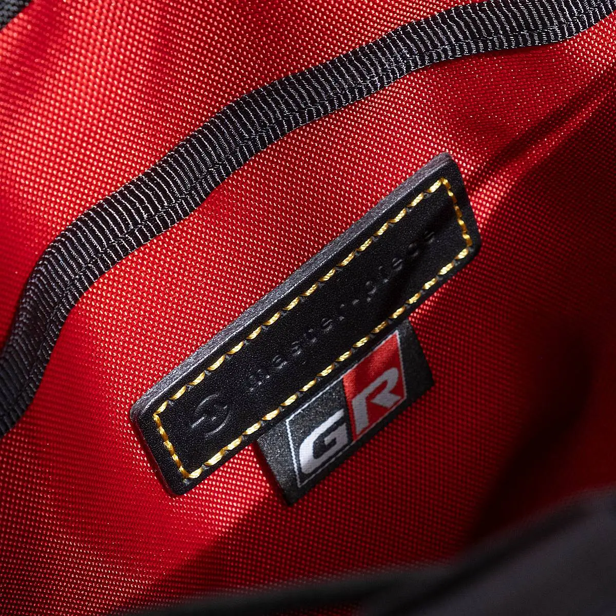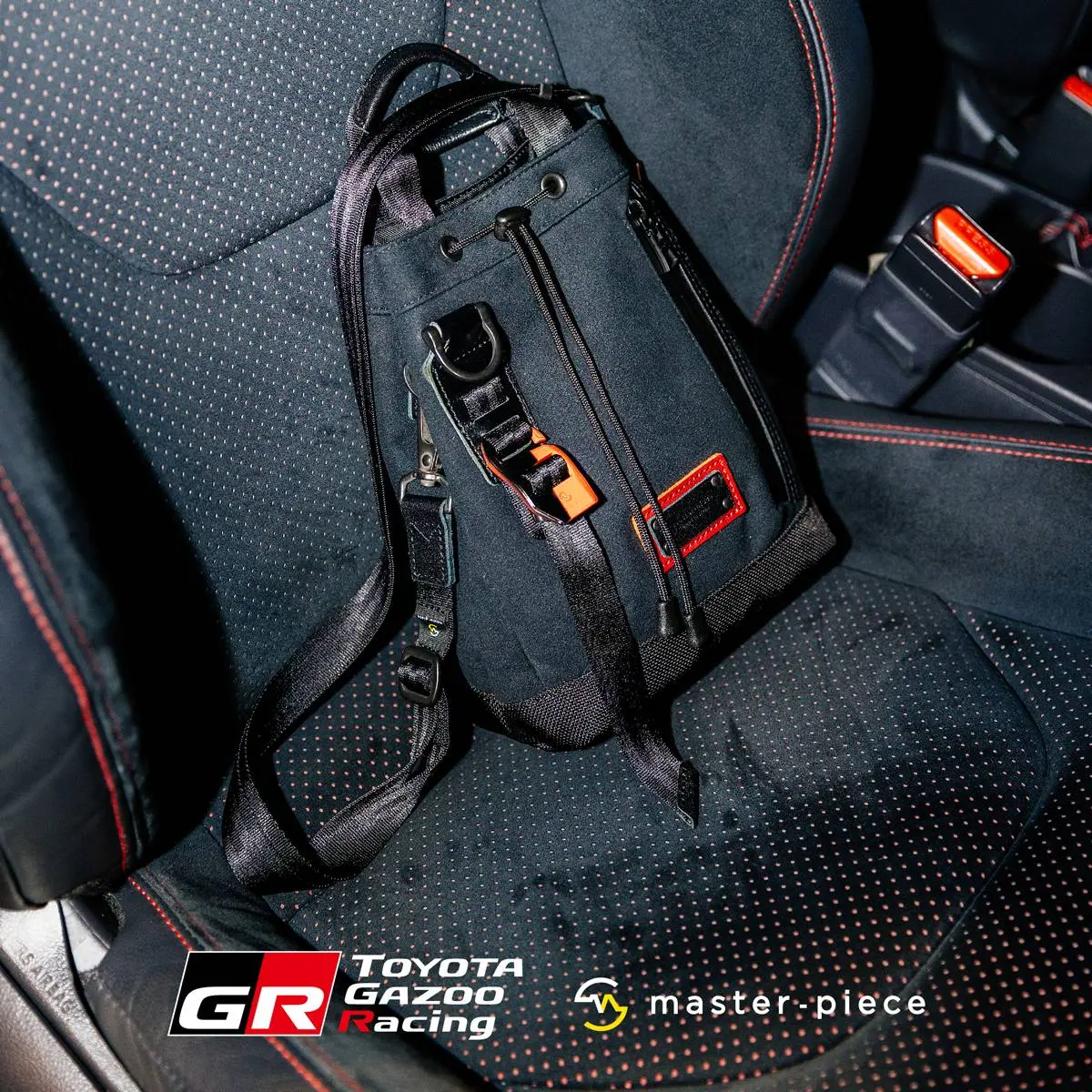 「GRは現在も“もっといいクルマ”をつくるために、モータースポーツに挑み続けている。走る、壊れる、直す。これを繰り返すことでクルマが強くなる。モータースポーツを起点とした“もっといいクルマづくり”に終わりはない。」挑戦を続けるGRのスピリットと、master-pieceのクラフトマンシップ。互いの妥協を許さない哲学が共鳴し、初のコラボレーションが実現しました。『GR YARIS』や『GR COROLLA』のシートに採用されるスウェード調ファブリックをアップサイクルし、バッグの本体素材に使用。極上の肌触りと極限のモータースポーツで実証された高耐久の素材に、CORDURA Ballisticナイロンやエコカウレザーを組み合わせ、GRを象徴するレッドを随所にあしらった特別仕様に仕上げています。本体素材には、トヨタ自動車株式会社が販売している車に専用のチューンアップを施したスポーツカーブランドGRの代表的な車種『GR YARIS』や『GR COROLLA』のシートに採用されているスウェード調ファブリック(アウンデ紡織株式会社製)を使用しています。大変繊維が柔らかく、滑らかな触感で極上の肌触りと高い強度を兼ね備えており、上質で表情豊かな素材感が特徴です。自動車のシート用に開発されたため、難燃性・耐光性・耐候性・耐摩耗性などの品質基準を満たした機能的な素材です。この商品は、自動車用シートを製造するトヨタ紡織株式会社のブランド『RE:TERRACE(リテラス)』によって、捨てられるはずだった表皮材を活用・アップサイクルしています。アップサイクルとは、本来廃棄される予定だったものに新たな価値を与え、別の製品として再利用する手法です。コラボレーションの証であるGRのピスネーム、内装の生地にはGRを象徴するレッドカラーの420dナイロンを使用し、master-pieceの定番とは全く異なった印象の雰囲気に仕上げました。さらにシリーズ共通のディテールとして、GRブランドカラーのレッドに仕上げた外装レザーネームの台座や、キャップやグローブなど小物を留める金属製オリジナルフックバックを装備。このフックバックルは脱着・交換ができるので、別売りのパーツで異なるカラーにカスタムができることも特徴です。内装には樹脂製のナスカンがついており、スマートキーなどの小物の収納に最適です。GR車種のハイクオリティなスウェード調シートファブリックをアップサイクル。master-pieceのバッグ9型の本体素材に落とし込んだ『TOYOTA GAZOO Racing』初めてのコラボレーションシリーズです。日本製。