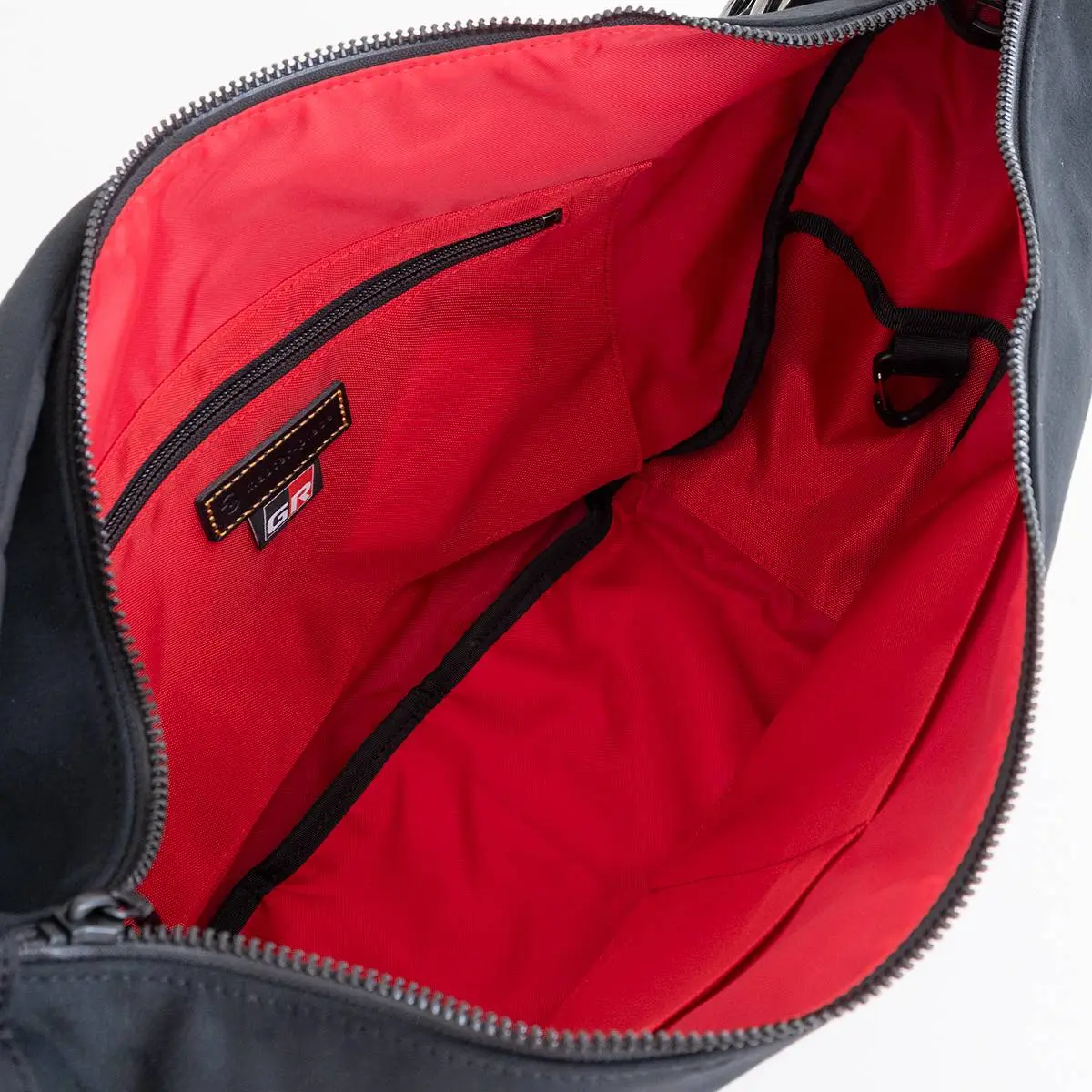 「GRは現在も“もっといいクルマ”をつくるために、モータースポーツに挑み続けている。走る、壊れる、直す。これを繰り返すことでクルマが強くなる。モータースポーツを起点とした“もっといいクルマづくり”に終わりはない。」挑戦を続けるGRのスピリットと、master-pieceのクラフトマンシップ。互いの妥協を許さない哲学が共鳴し、初のコラボレーションが実現しました。『GR YARIS』や『GR COROLLA』のシートに採用されるスウェード調ファブリックをアップサイクルし、バッグの本体素材に使用。極上の肌触りと極限のモータースポーツで実証された高耐久の素材に、CORDURA Ballisticナイロンやエコカウレザーを組み合わせ、GRを象徴するレッドを随所にあしらった特別仕様に仕上げています。本体素材には、トヨタ自動車株式会社が販売している車に専用のチューンアップを施したスポーツカーブランドGRの代表的な車種『GR YARIS』や『GR COROLLA』のシートに採用されているスウェード調ファブリック(アウンデ紡織株式会社製)を使用しています。大変繊維が柔らかく、滑らかな触感で極上の肌触りと高い強度を兼ね備えており、上質で表情豊かな素材感が特徴です。自動車のシート用に開発されたため、難燃性・耐光性・耐候性・耐摩耗性などの品質基準を満たした機能的な素材です。この商品は、自動車用シートを製造するトヨタ紡織株式会社のブランド『RE:TERRACE(リテラス)』によって、捨てられるはずだった表皮材を活用・アップサイクルしています。アップサイクルとは、本来廃棄される予定だったものに新たな価値を与え、別の製品として再利用する手法です。コラボレーションの証であるGRのピスネーム、内装の生地にはGRを象徴するレッドカラーの420dナイロンを使用し、master-pieceの定番とは全く異なった印象の雰囲気に仕上げました。さらにシリーズ共通のディテールとして、GRブランドカラーのレッドに仕上げた外装レザーネームの台座や、キャップやグローブなど小物を留める金属製オリジナルフックバックを装備。このフックバックルは脱着・交換ができるので、別売りのパーツで異なるカラーにカスタムができることも特徴です。内装には樹脂製のナスカンがついており、スマートキーなどの小物の収納に最適です。GR車種のハイクオリティなスウェード調シートファブリックをアップサイクル。master-pieceのバッグ9型の本体素材に落とし込んだ『TOYOTA GAZOO Racing』初めてのコラボレーションシリーズです。日本製。
