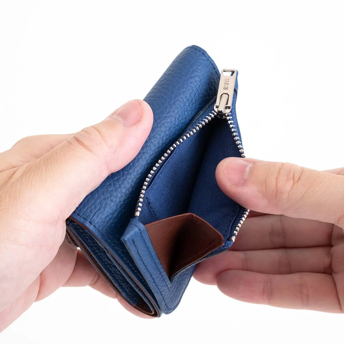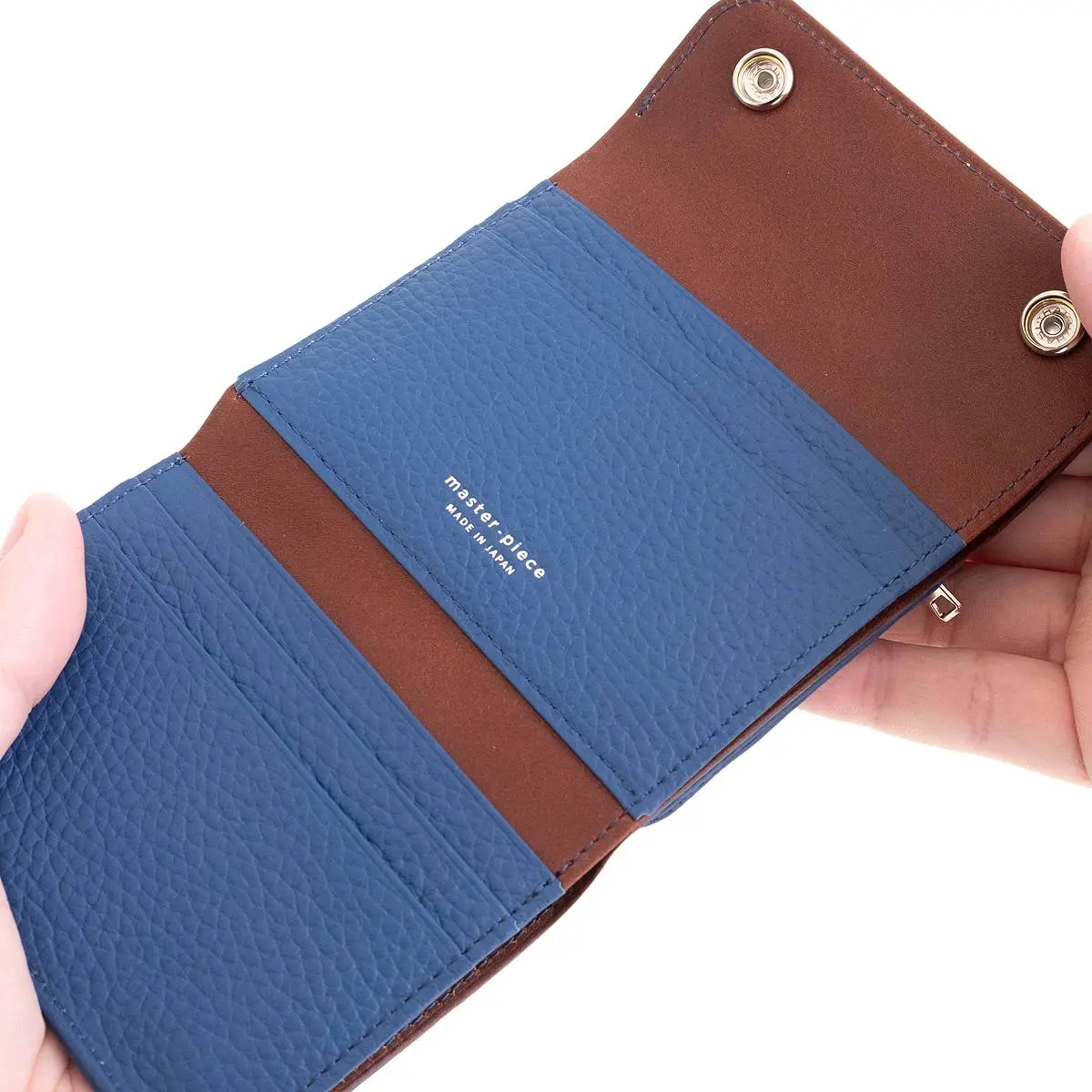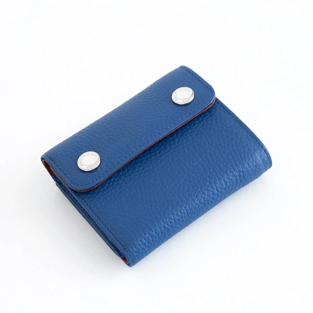 アメリカのトラッカーウォレットのイメージをベースに、現在の生活環境で使いやすい機能性とサイズ感に落とし込んだ小物シリーズ。ポケットにも収めやすいサイズ感でありながら、充実の収納力が特徴のミドルウォレット。本体素材は国産・北米・ヨーロッパのその時の良質な原皮を厳選し使用しています。クロム鞣し後に染色を行い、ヨーロッパの微粒子顔料(マイクロピグメント)を使用することにより透明感があるにも関わらず色落ち・色褪せがしにくい仕上げとなっています。家具用革としても使用されており、堅牢性・耐光性に優れ、柔らかい風合いと手触りが特徴です。内装で使用しているレザーは国産・北米・ヨーロッパのその時の良質な原皮を使用し、コンビネーション鞣し(クロム鞣し後、多めのタンニンで再鞣しをしたもの)で染色段階からオイルをたっぷりと浸透させています。染色後に染料のみで仕上げ、最終工程にベタツキが出ない特殊オイルを含ませるダブルオイル(再加脂)の手法を取っているため、革が柔軟で銀面もしっとりとしたオイルタッチが楽しめます。革本来の特徴を活かしたアニリン製法とオイルの深み、重厚さを兼ね備えた素材になります。アメリカのトラッカーウォレットのイメージをベースに、現在の生活環境で使いやすい機能性とサイズ感に落とし込んでいます。芯の使い方を極力ソフトにするなど布帛製品のようなカジュアル感を意識しつつ、レザー製品ならではの製造テクニックを駆使することで他にはないレザー小物シリーズとなっています。本体の3色のカラーは、ブラックはレザージャケットやレザーシューズに用いられるスタンダードカラー、ブルーはデニム、オリーブはミリタリーをイメージしています。日本製。