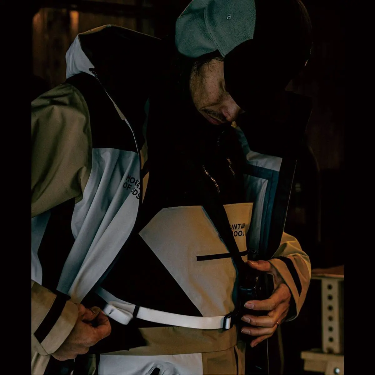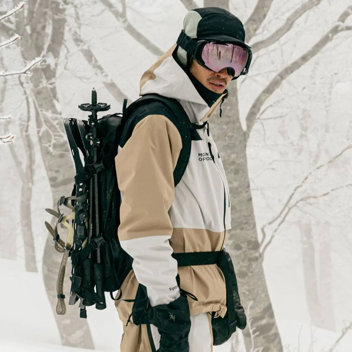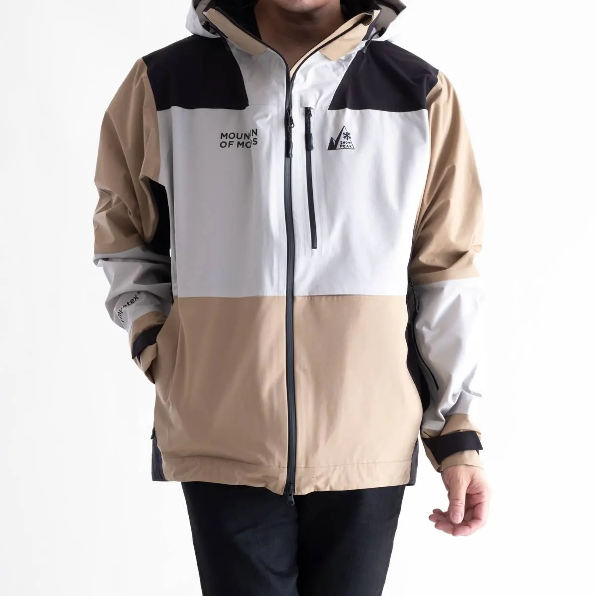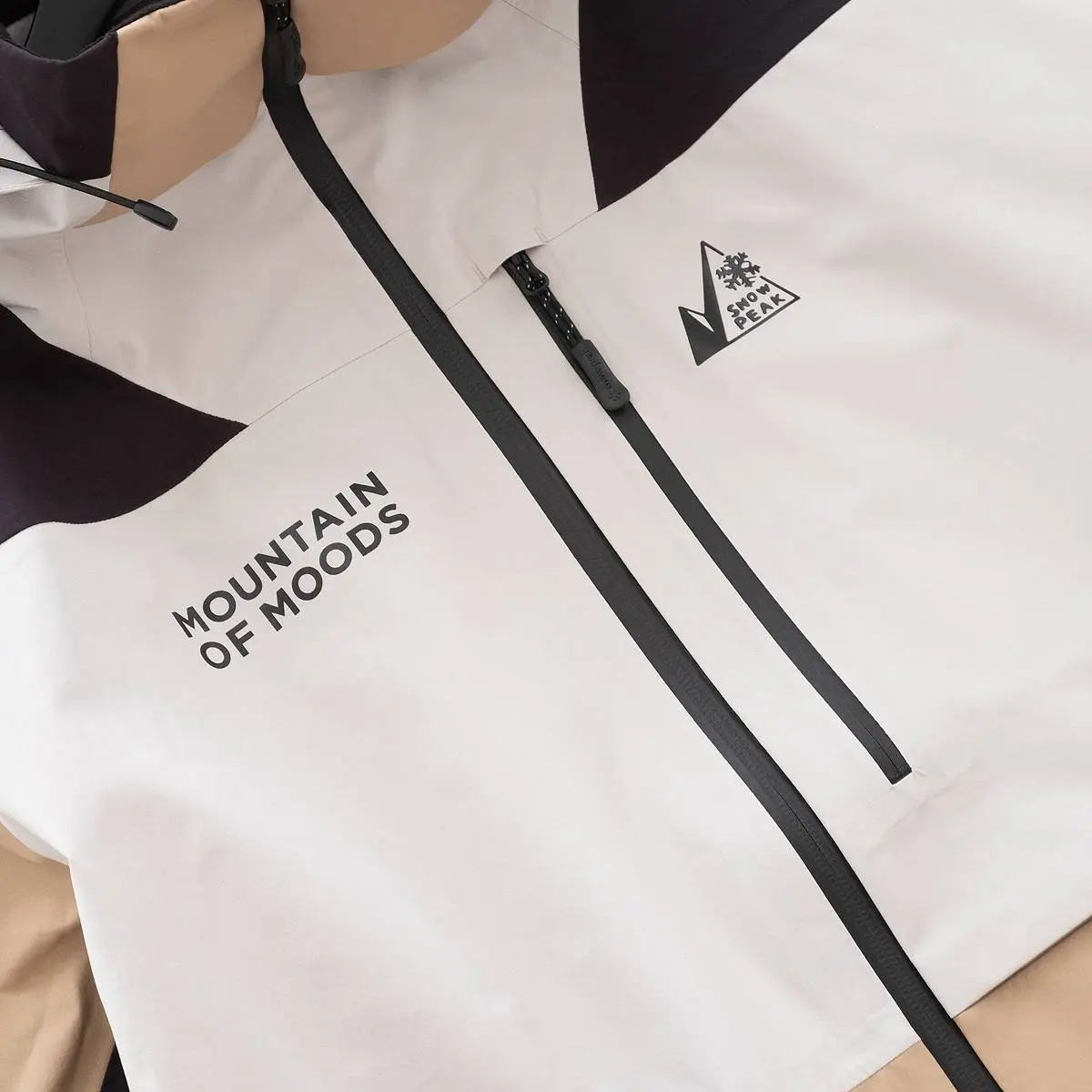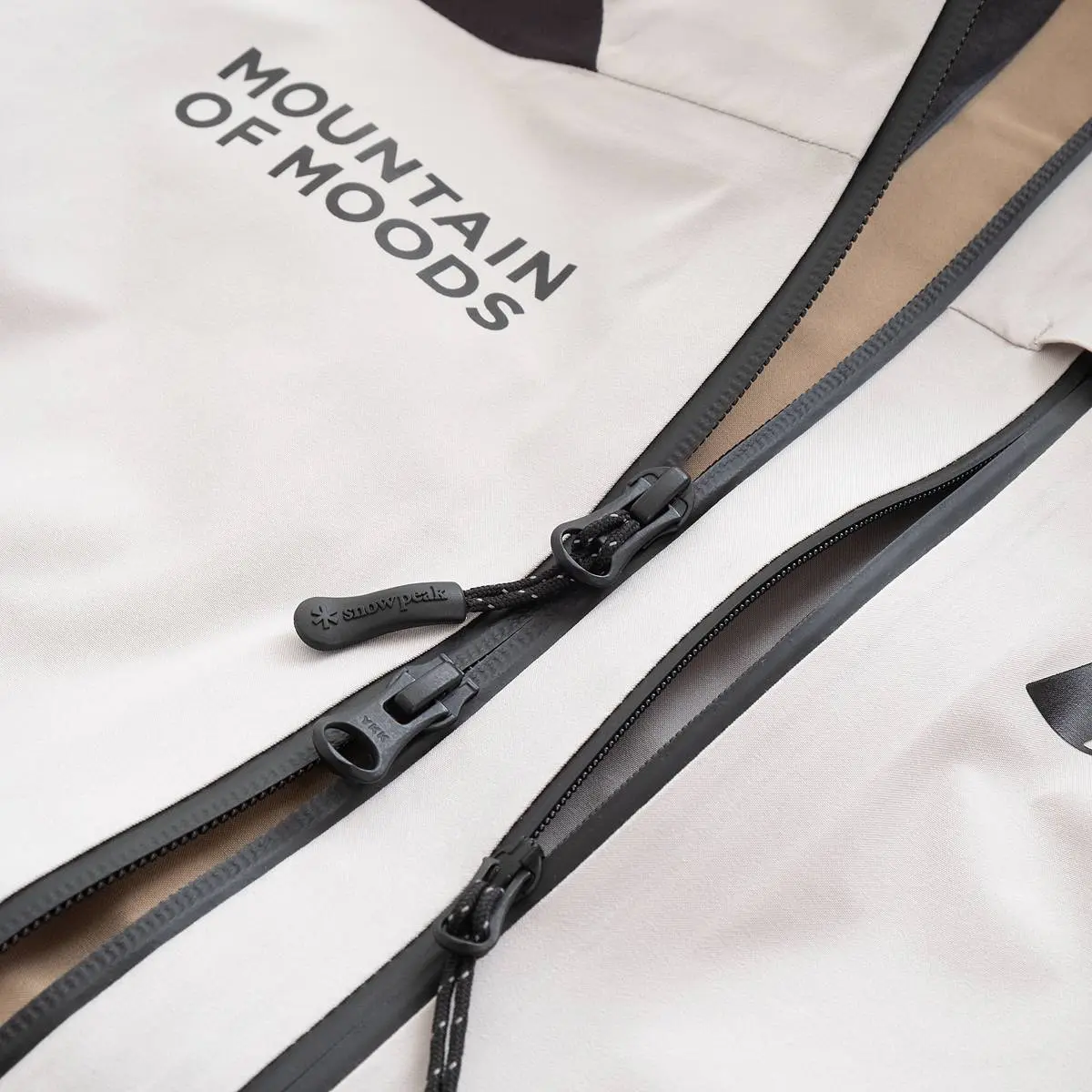 2025年秋冬『SnowPeak(スノーピーク)』×『mountain of moods(マウンテンオブムーズ)』コラボレーションアイテム。『Snow Peak』と、スノーアクティビティアパレルブランド『mountain of moods』のコラボレーションシリーズ。『mountain of moods』はアクティブな山生活からインスパイアされたデザインと、それに対応するハイスペックな機能素材やディテールワークを用いたレーベル。“アーバンアウトドア”をコンセプトに、いかなる状況下でも最善のパフォーマスンを発揮できるスピーディな環境適応性、全ての動作におけるストレスフリーな商品を開発しています。脇下ベンチレーションと襟元ベンチレーションにより、呼気や運動時の蒸れを抑制。バックカントリーやゲレンデライディングなど、激しいスノーアクティビティにも対応可能です。袖口にはサムループを装備し、グローブ使用時のずり上がりを防止。左袖にはリフトパス用ポケットを設け、ゲレンデでも便利に使えます。ミドル丈で防寒性と運動性のバランスが良く、フリースとのレイヤリングで高い透湿性を発揮。冬季登山・スノーアクティビティ・ゲレンデライド・悪天時のタウンユースまで幅広く活躍する一着です。洗濯可。透け感:なし 裏地:なし 伸縮性:なし 光沢感:なし 生地の厚さ:普通