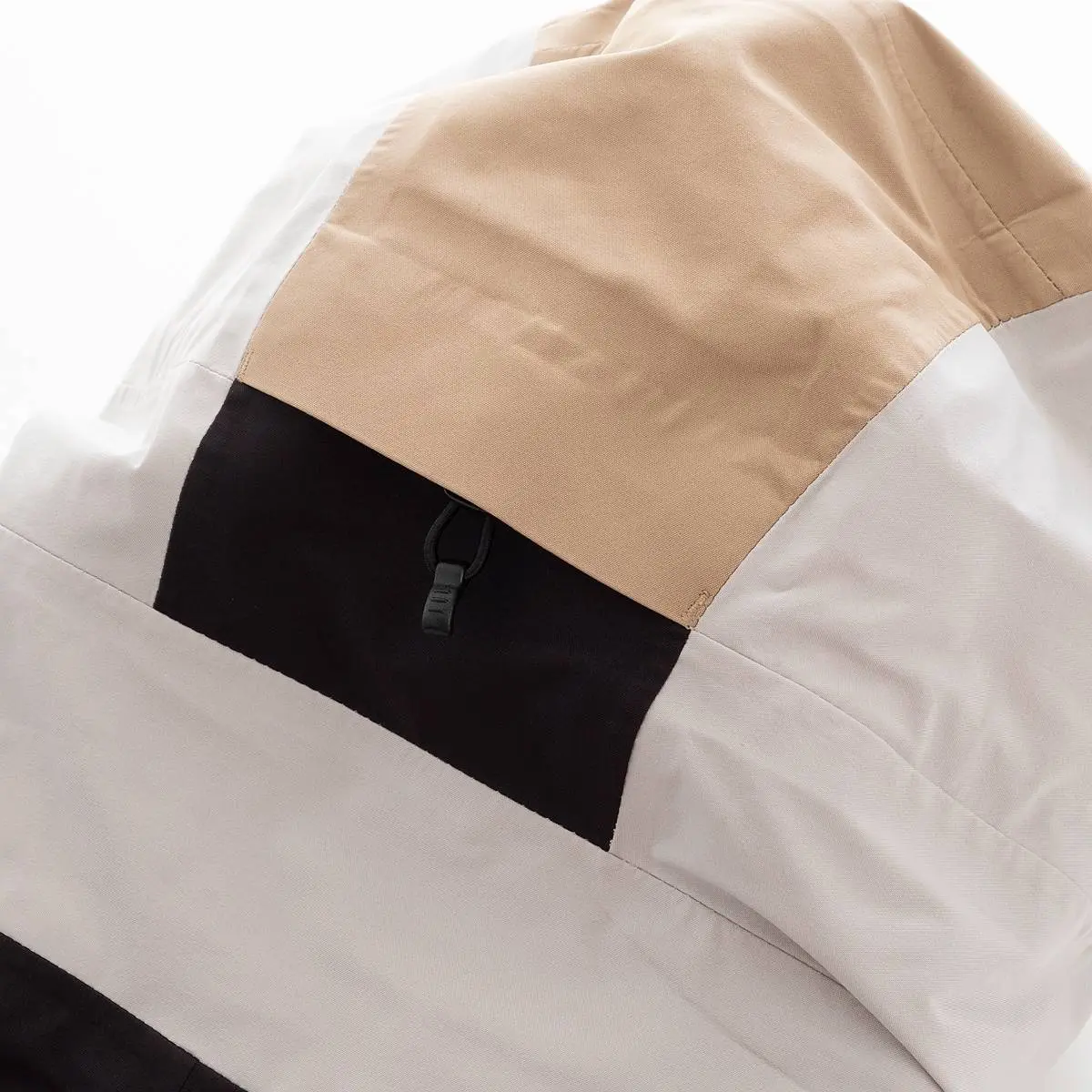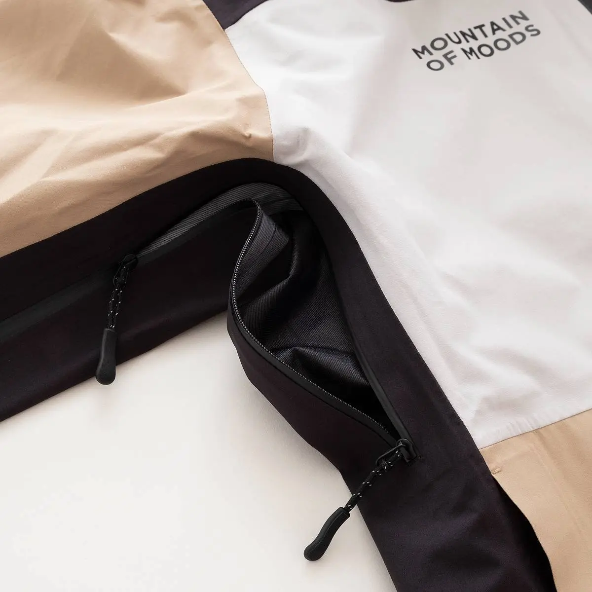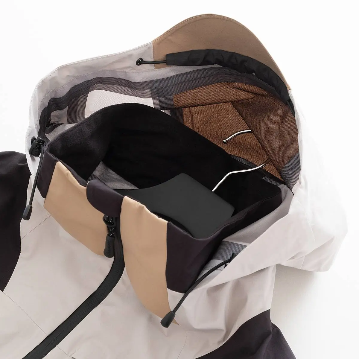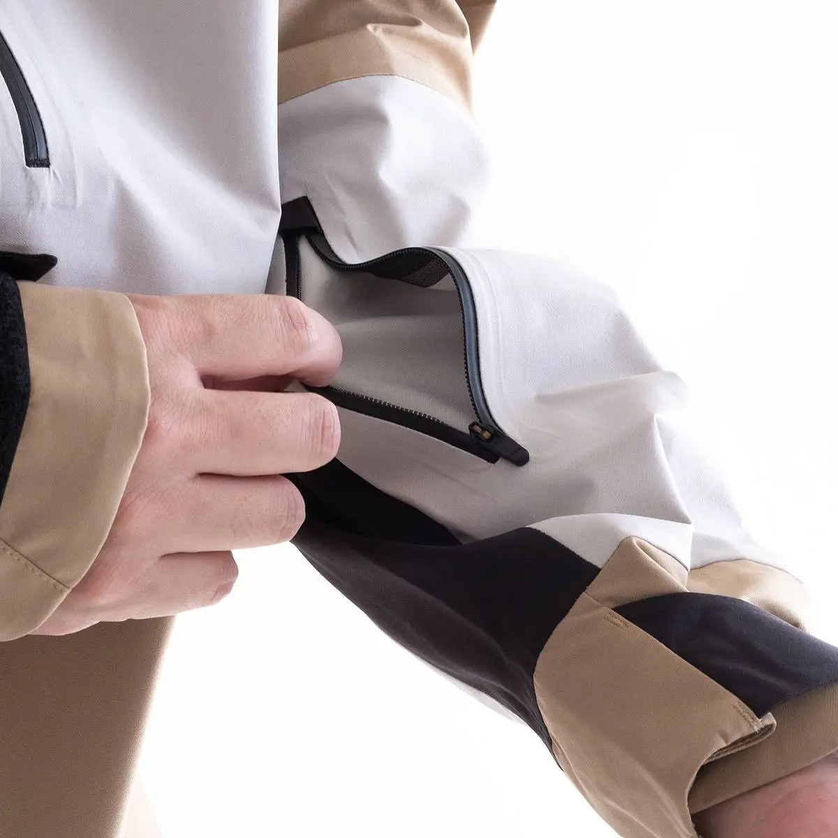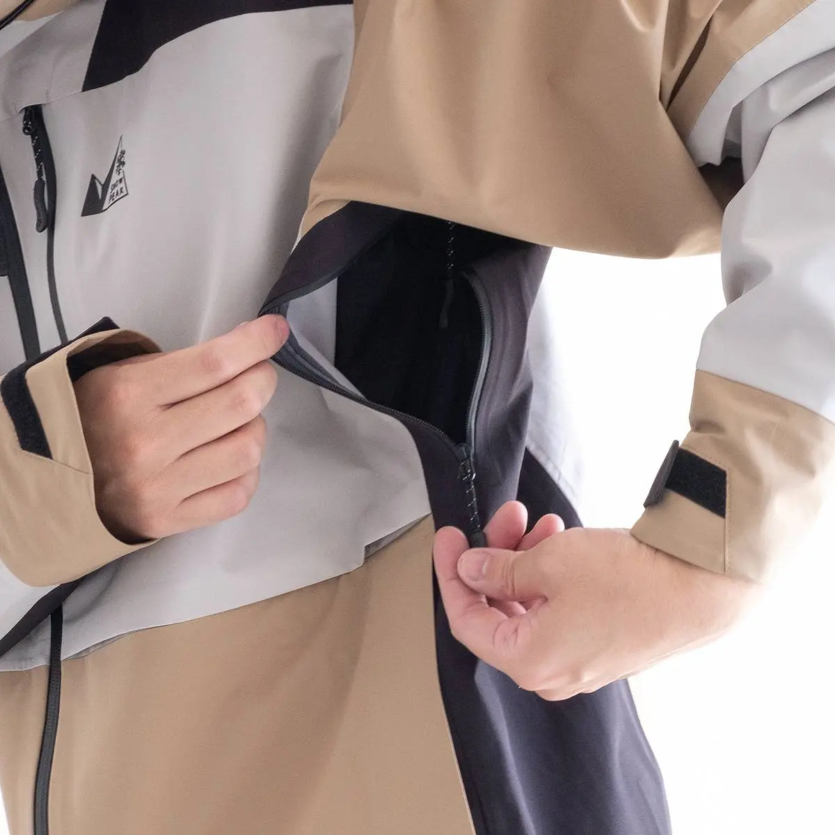 2025年秋冬『SnowPeak(スノーピーク)』×『mountain of moods(マウンテンオブムーズ)』コラボレーションアイテム。『Snow Peak』と、スノーアクティビティアパレルブランド『mountain of moods』のコラボレーションシリーズ。『mountain of moods』はアクティブな山生活からインスパイアされたデザインと、それに対応するハイスペックな機能素材やディテールワークを用いたレーベル。“アーバンアウトドア”をコンセプトに、いかなる状況下でも最善のパフォーマスンを発揮できるスピーディな環境適応性、全ての動作におけるストレスフリーな商品を開発しています。脇下ベンチレーションと襟元ベンチレーションにより、呼気や運動時の蒸れを抑制。バックカントリーやゲレンデライディングなど、激しいスノーアクティビティにも対応可能です。袖口にはサムループを装備し、グローブ使用時のずり上がりを防止。左袖にはリフトパス用ポケットを設け、ゲレンデでも便利に使えます。ミドル丈で防寒性と運動性のバランスが良く、フリースとのレイヤリングで高い透湿性を発揮。冬季登山・スノーアクティビティ・ゲレンデライド・悪天時のタウンユースまで幅広く活躍する一着です。洗濯可。透け感:なし 裏地:なし 伸縮性:なし 光沢感:なし 生地の厚さ:普通