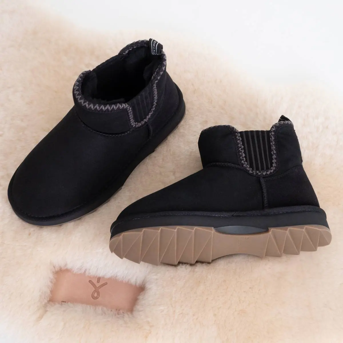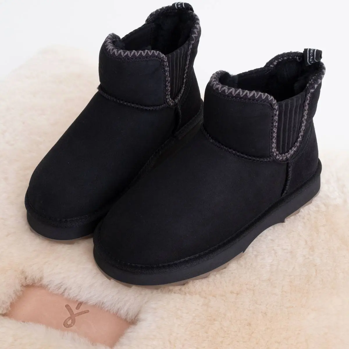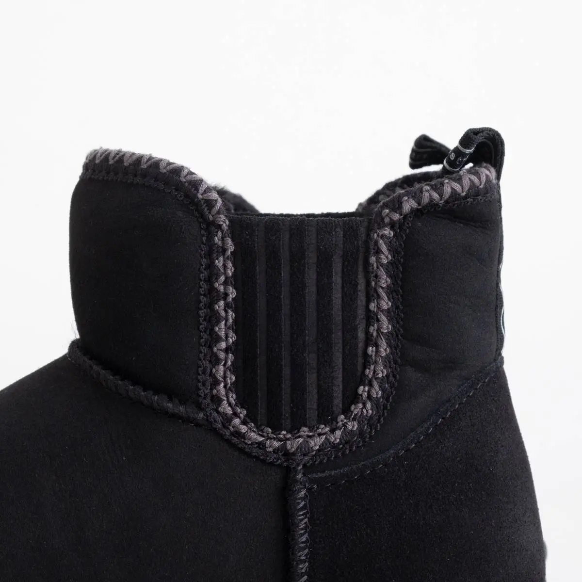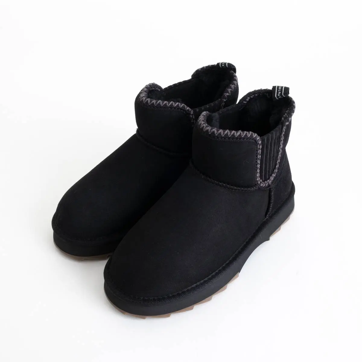 EMU Australia(エミュオーストラリア)と言えばシープスキン×ムートン。Higgieは履き口のステッチとサイドゴアが特徴のブーツ。やや短めの筒丈とシャークソールを採用したフォルム・実用性共に優れた一足。服のコーディネートに合わせやすく、ステッチで足元に一つアクセントを入れられるところがポイント。シープスキンは吸湿・放湿に優れているため、寒い日は温かく包み込み、暖かい日は汗などの水分を吸湿し、外に逃がす効果があり蒸れにくく快適に過ごせます。また撥水加工が施されているので、汚れが付きにくくお手入れが簡単です。防水加工ではございませんので万が一、雨など水に濡れた際はお早めに乾いたタオル等で拭き取り、陰干し等で乾かしてください。オーストラリア製。