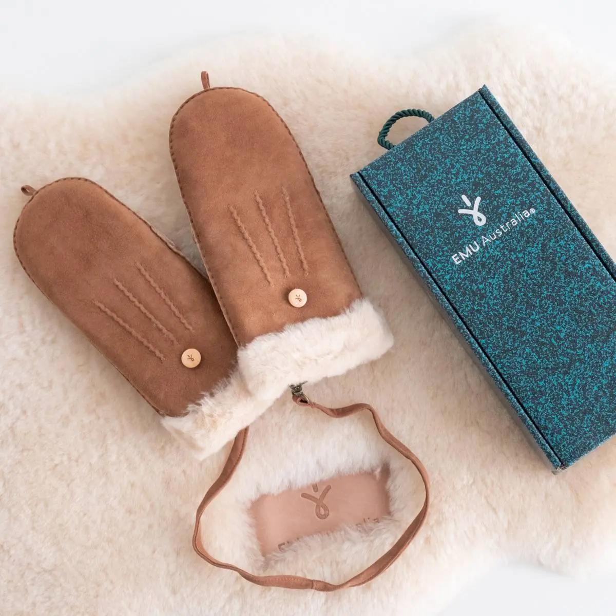 EMU Australia(エミュオーストラリア)と言えばシープスキン×ムートン。Montana Mittensは表地を柔らかくしなやかなシープスキンレザー、裏地をふんわりとした気持ちの良い肌触りであたたかなムートンで仕上げた手袋です。内側から指を出すことのできる仕様のミトン。裾口は中のムートンを外まで配した、手首の部分にふわっとしたデザインポイントのある設定。ムートンは同色の物を採用しています。付属の紐で左右を繋げて首に掛けたりもできます。プレゼントやギフトにも最適なアイテム。オーストラリア製。